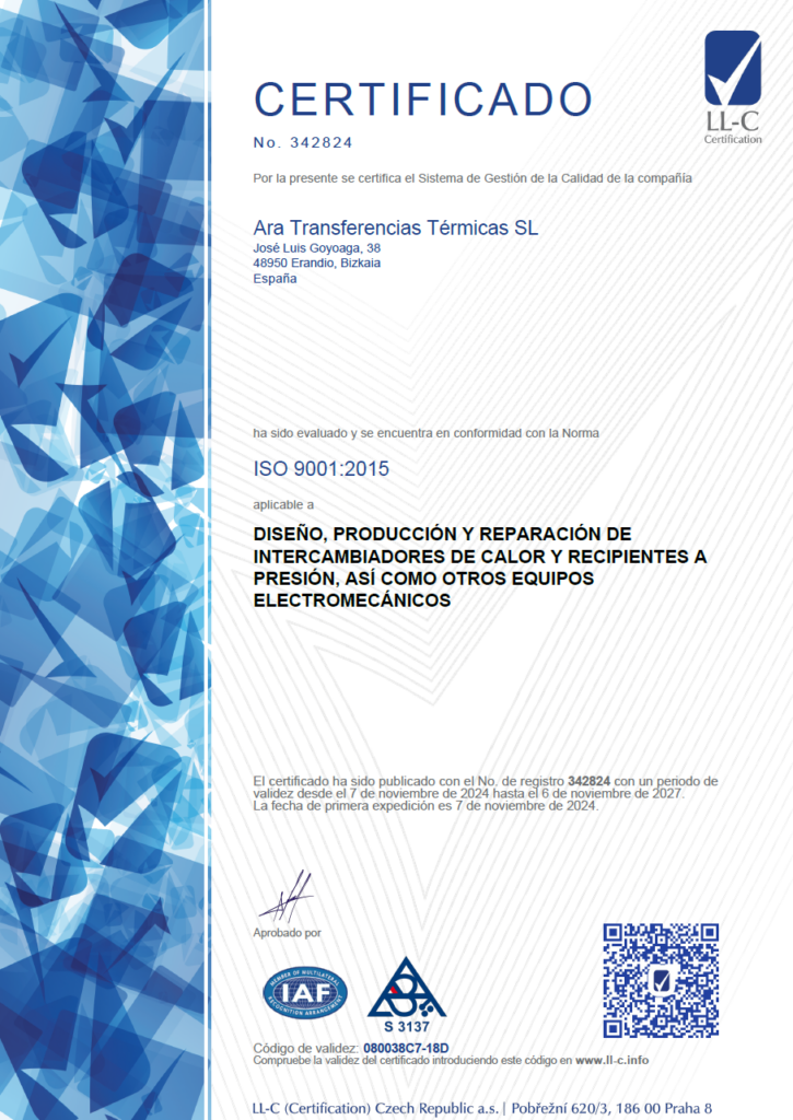 Si es precisado por el cliente, diseñamos equipos certificados con el Sello U o S, ambos expedidos por el Lloyd’s Register Quality Assurance.